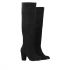 Vysoké čižmy na širokom a vysokom podpätku. Funkčný zips na vnútornej strane čižmy do pol lýtka. Ozdobné prešívanie na vonkajšej strane sáry a cez priehlavok. Zakončenie s okrúhlou špičkou. Materiál koženka semiš. Výška podpätku 7,5 cm pre podrozmerné veľkosti 32-35 a výška podpätku 9,5 cm pre nadrozmerné veľkosti 42-45.