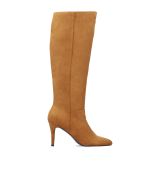 Vysoké čižmy na širokom a vysokom podpätku. Funkčný zips na vnútornej strane čižmy do pol lýtka. Ozdobné prešívanie na vonkajšej strane sáry a cez priehlavok. Zakončenie s okrúhlou špičkou. Materiál koženka semiš. Výška podpätku 7,5 cm pre podrozmerné veľkosti 32-35 a výška podpätku 9,5 cm pre nadrozmerné veľkosti 42-45.