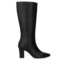 Vysoké čižmy na hranatom širokom a vysokom podpätku. Ozdobný detail prešívania v strednej časti od špičky po koniec sáry. Funkčný zips na vnútornej strane čižmy po celej dĺžke a všitý elastický miniklin. Materiál koženka hladká. Výška podpätku 7,3 cm pre podrozmerné veľkosti 32-35 a výška podpätku 8,5 cm pre nadrozmerné veľkosti 42-45.