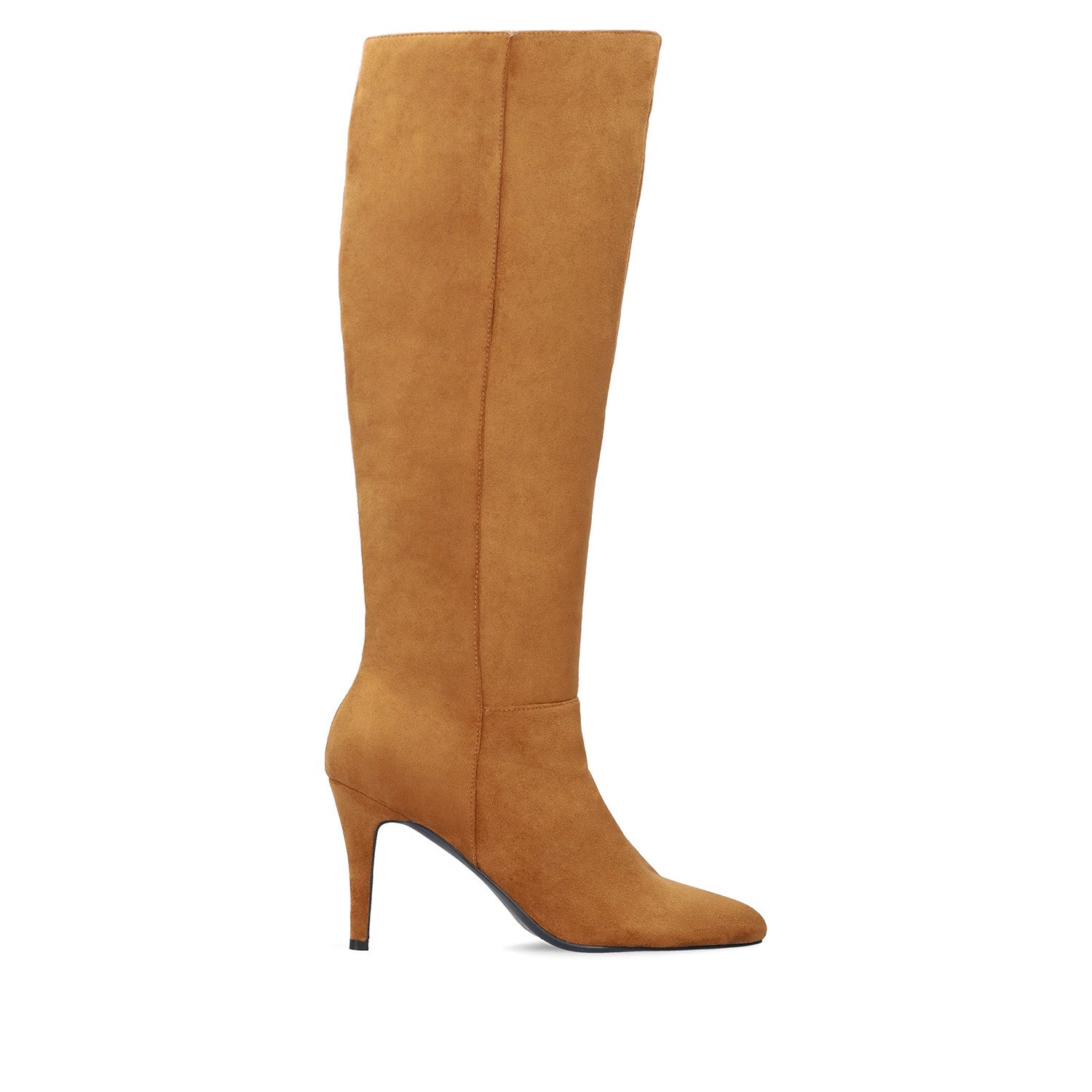 Vysoké elegantné čižmy na tenkom a vysokom podpätku. Funkčný zips na vnútornej strane čižmy do pol sáry. Materiál koženka semiš. Výška podpätku 7,5 cm pre podrozmerné veľkosti 32-35 a výška podpätku 10 cm pre nadrozmerné veľkosti 42-45.