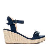 Espadrilky na vysokom klinovom podpätku a platforme. Dizajn s prepletaným niťovým vzorom našitým na remienku cez pätu. Zapínanie pomocou širokej bielej šnúrky okolo členku. Okrúhla uzavretá špička s prekrížením. Materiál koženka látková a jutový klin s platformou. Výška podpätku 10,5 cm a výška platformy pod prstami 2,5 cm pre podrozmerné veľkosti 32-35, výška podpätku 12 cm a výška platformy pod prstami 2,5 cm pre nadrozmerné veľkosti 42-45.