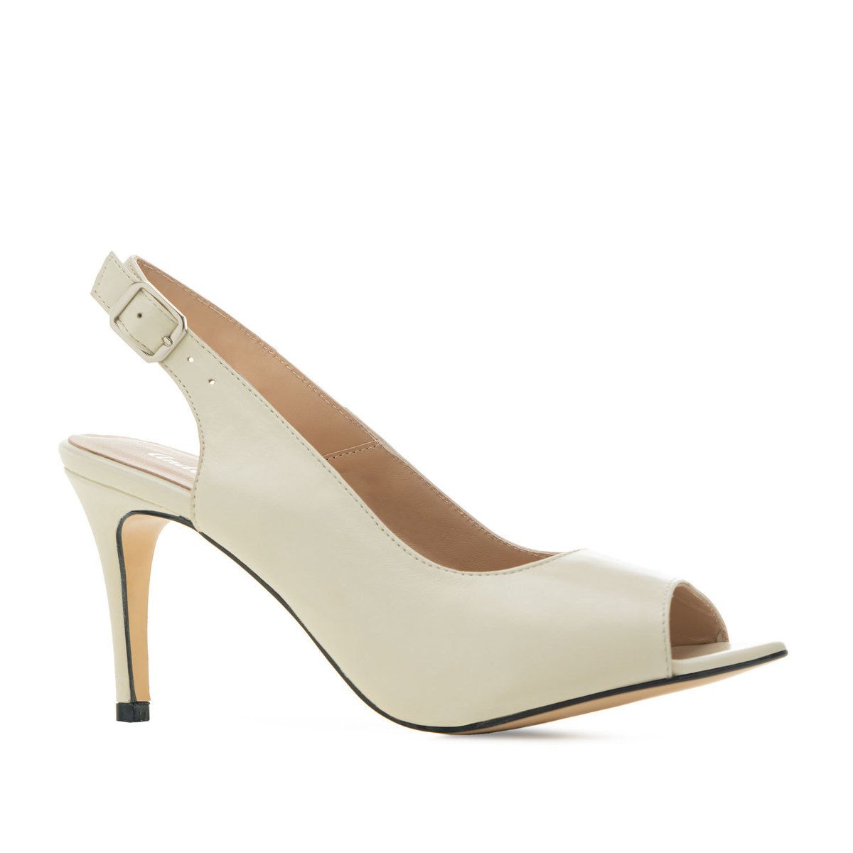 Elegantné kožené sandále na tenkom a vysokom podpätku, otovrená päta a špička. Remienok okolo päty nastaviteľný pomocou kovovej pracky. Materiál koža. Výška podpätku 8,5 cm pre veľkosti 32-35 a výška podpätku 9,5 cm pre veľkosti 42-45. Španielska ručná výroba.